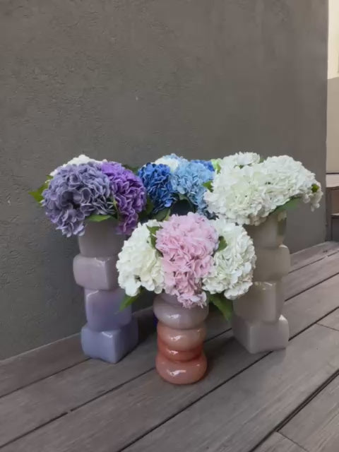סידור פרחים מדויק ומרהיב בגוונים שונים, המשלב 5 פרחי הורטנזיות איכותיים ברמת גימור, מגע ומראה טבעי, רך ומלא עומק. כל פרח נבחר בקפידה כדי ליצור מראה עשיר, מאוזן והרמוני שמוסיף יוקרה ורוגע לכל חלל.